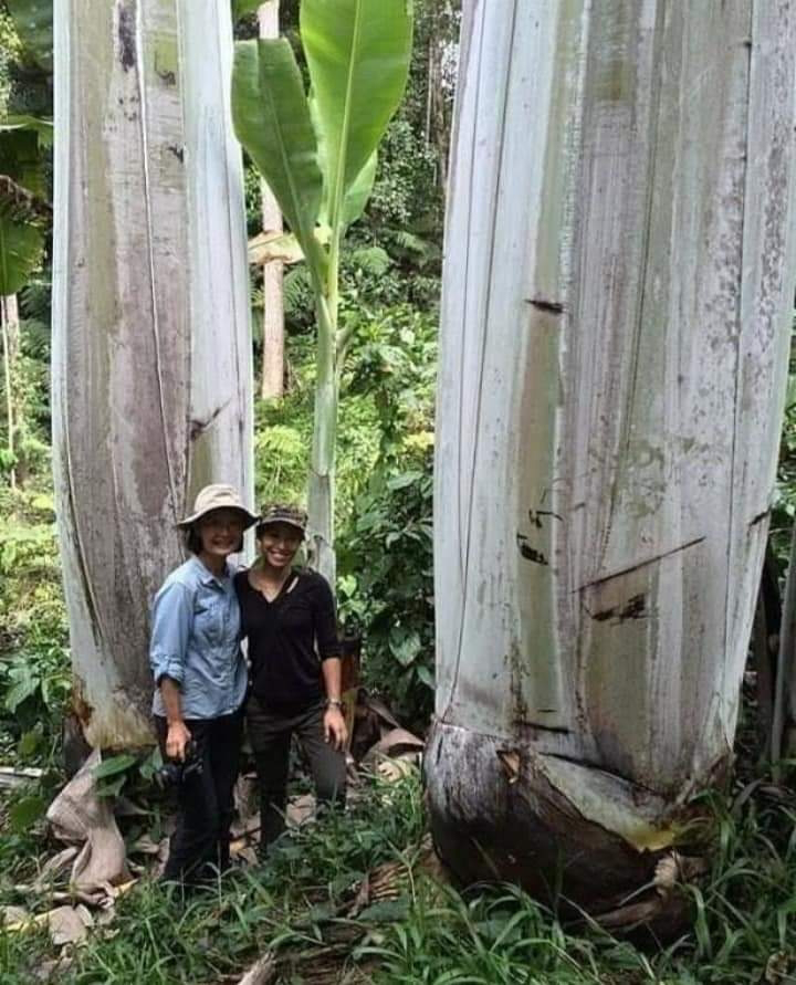 Diameter pohon pisang raksasa di Papua tersebut setara dengan keliling pelukan dua orang dewasa yang melingkar. Daun pisang itu sendiri memiliki panjang sekitar 5 meter dengan lebar daun kurang lebih hingga 1,60 meter. Satu lembar daun bia untuk bungkus ratusan nasi lemak....